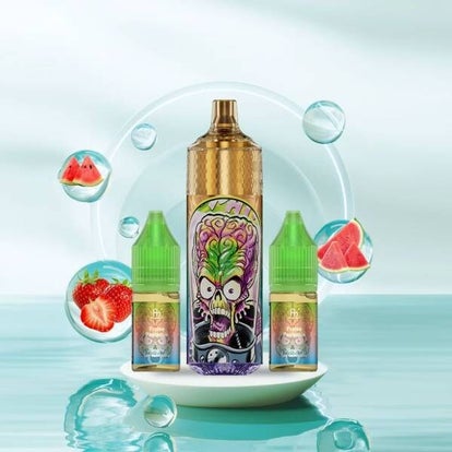 Le Kit RandM TORNADO 28 K est équipé d'une batterie intégrée de 900mAh et d'un réservoir offrant une capacité impressionnante de 10ml de liquide qui se recharge avec les 2 fioles fournies d'une capacité total de 10 ml chacune au taux de 20mg (2%) de sels de nicotine.